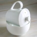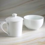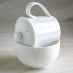 Esse conjunto é o acessório para os especialistas em chás. É usado para aulas com chás. A caneca tem pequenos dentes para segurar a folha na xícara. A tigela se torna a xícara para a degustação e também o descanso da xícara quando o chá estiver sendo derramado ao bowl.