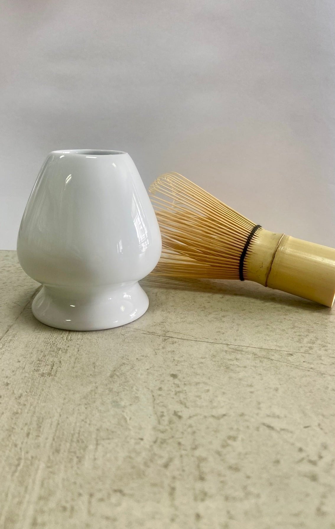 Feito em porcelana branca, o naoshi é um suporte tradicional para Chasen, muito utilizado em cerimônias de chás do matcha.